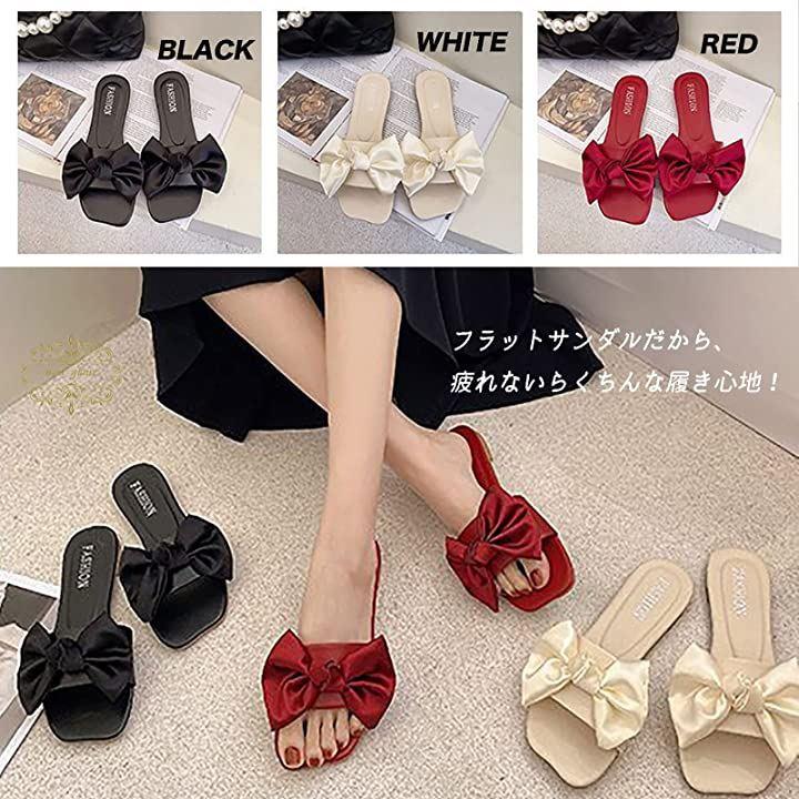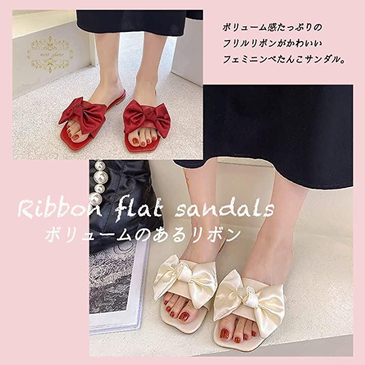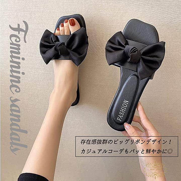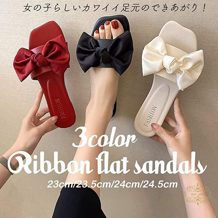 リボン サンダル レディース 歩きやすい ビーチ カジュアル 夏 ぺたんこ かわいい 24.5cm