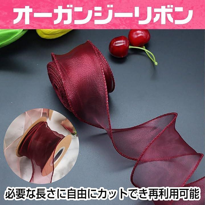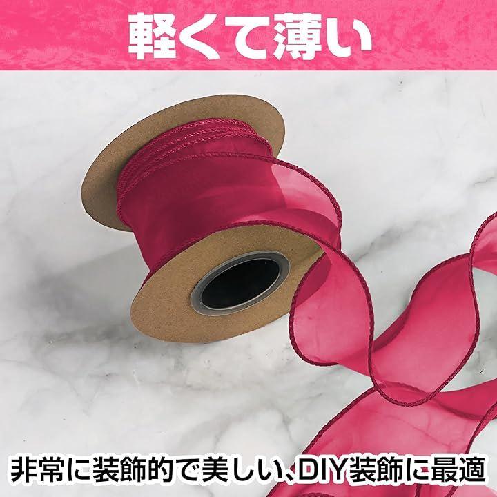 ラッピング、ウェディング、パーティーの装飾、DIY、手芸、ヘアアクセサリーなど汎用性の高いワインレッド、幅4cm、大容量10M、縁のナイロン糸で成形も簡単で使いやすい。