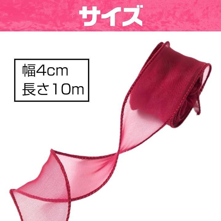 オーガンジーリボン、幅4cmx長さ10M、ナイロン、ワインレッド*モニターの環境により、色の見え方に若干差が生じる場合がございます。