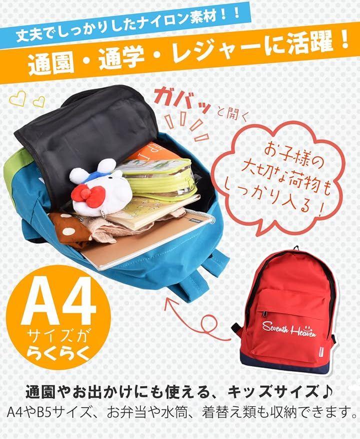 A4サイズの物なら収納でき、水筒やお弁当もしっかり入るサイズなので通園や遠足、旅行、林間学校など様々な用途でご使用できます。