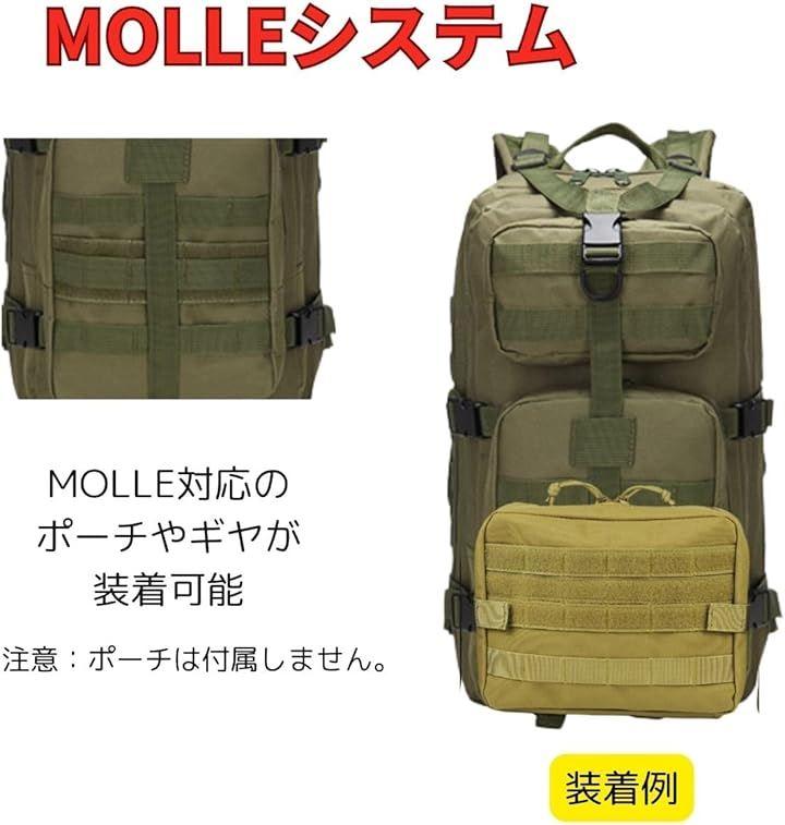 MOLLEシステム:MOLLEウェビングを利用して、MOLLE対応のアイテムの取り付けができます。