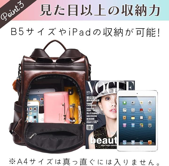 背面から開くタイプで安心、防犯・盗難防止に役立つレザー調のバックパック リュックサックです。