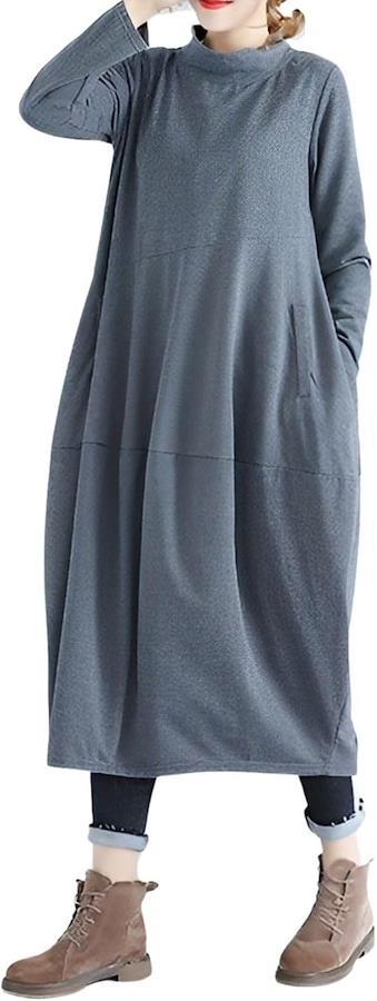 シンプルながらもさりげない切り替えラインとゆるやかなボトルネックがおしゃれなリラックス感があるワンピース ぽわんっとしたコクーンシルエットで気になる体型も可愛くカバーしながら 旬のゆるい着こなしを楽しめます。