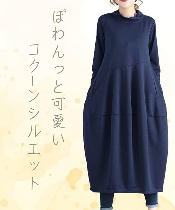リラックスx華奢見えゆったり ワンピース レディース コクーンシルエット ロング丈 コクーンワンピ ナチュラル 長袖 チュニック 大人 切り替え