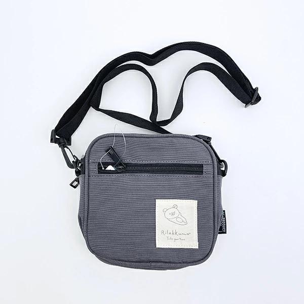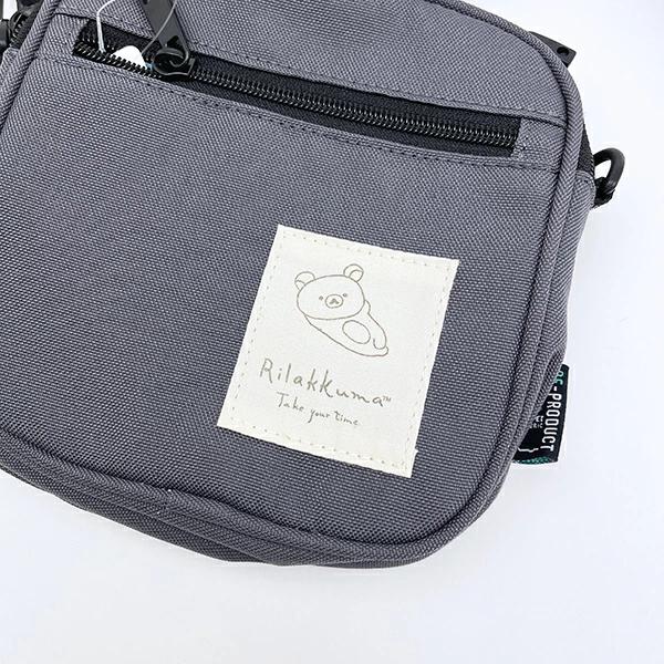 リラックマがワンポイントでデザインされたショルダーバッグです。どなたでもお持ちいただける落ち着いたカラー。 収納も多く、後ろのポケットはスマホを立てて入れられる工夫が! 撥水加工もされていて、通常使いはもちろん、ちょっとコンビニに出かける時も丁度いいサイズになっています♪