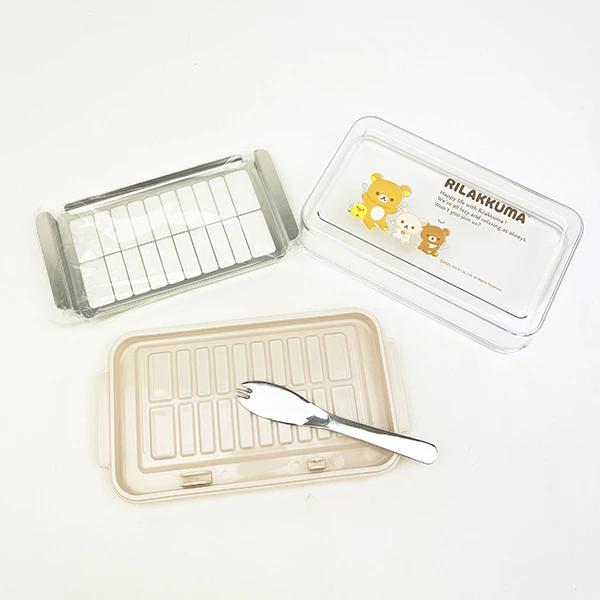 リラックマのステンレスバターカッター&ケースです♪市販のバターを一度にカットし、そのまま保存できるバターケース♪200gのバターを20等分(10g)に切り分けることができます。手を汚すこともなく、包丁やまな板も不要◎バターが取りやすい先割れナイフ付きなのも嬉しい☆彡※バターは必ず常温に戻してカットしてください。※食洗機・電子レンジ使用可◎