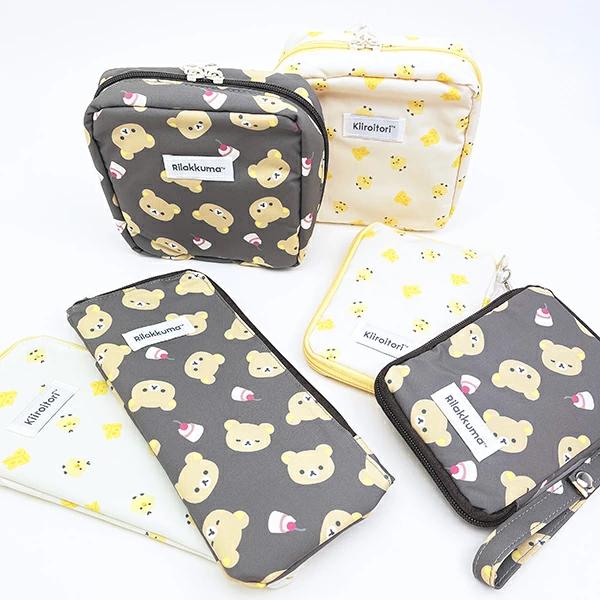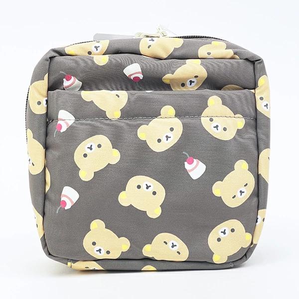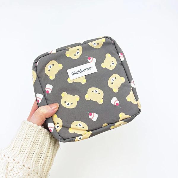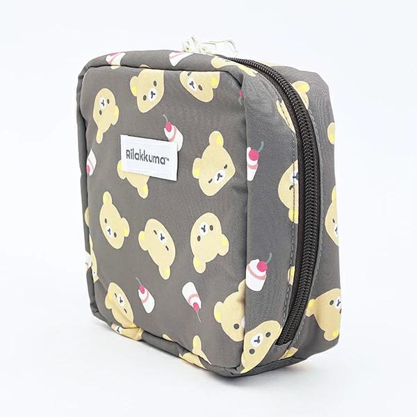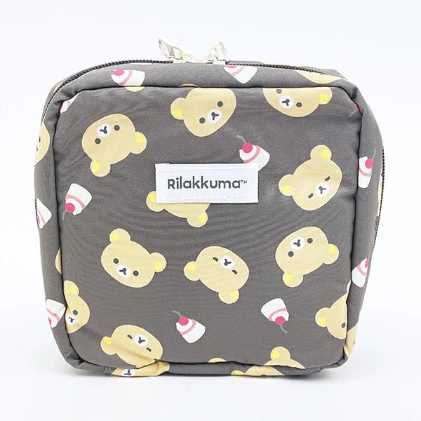 リラックマのチラシ柄がかわいい自立ポーチ。マチ付きで自立するので、パッと見やすく使い勝手も収納力もバツグンです♪