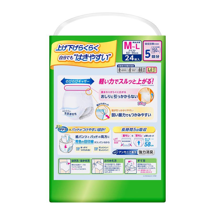 上げ下げらくらくで自分でもはきやすい!・腰周りがらくに広がりおしりに引っかからない。・指かけポケットに指がかかるから、弱い握力でもつかみやすい。だから、軽い力でスルッと上がる。●青色の目印線でパッドがつけやすい。●アンモニア臭を強力消臭。●全面通気性でムレにくい。●しっかり立ち上がる腰まで長い吸収体が、股モレ背モレをWでガード。●長時間5回吸収。(医療費控除対象品) 上げ下げらくらくで自分でもはきやすい! 青色の目印線でパッドがつけやすい 長時間5回吸収(医療費控除対象品)