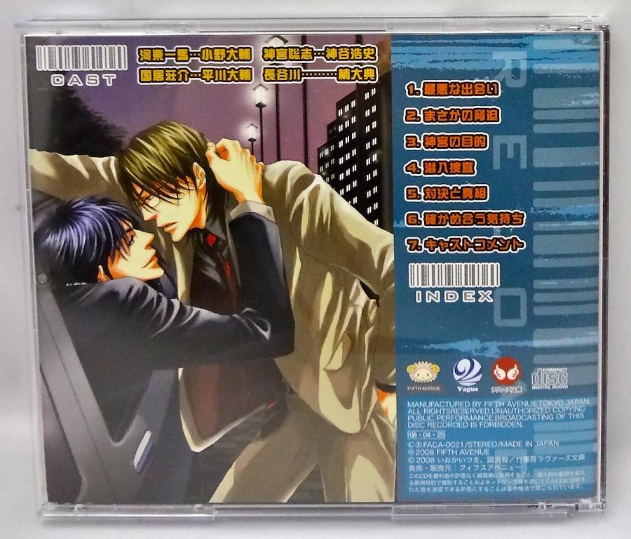 通常1-5営業日で発送【新品未開封品】警視庁に勤める検挙率Nol.1刑事、河東一馬と、科学技術捜査研究所のクールで優秀な研究者、神宮聡志。二人は反りが合わず、会えば度々ぶつかっていた。しかし、ある事件をきっかけにその関係は変化する。事件がもとで、ふたりは身体の関係を結ぶことになってしまったのだ …。女好きで極ノーマルな一馬と、男が好きだが攻めの聡志。またしてもここで激しい衝突をすることに。果たして主導権を賭けた駆け引きに勝利するのはどっち!?男のプライドがぶつかり合う、ラブアクシデント!!