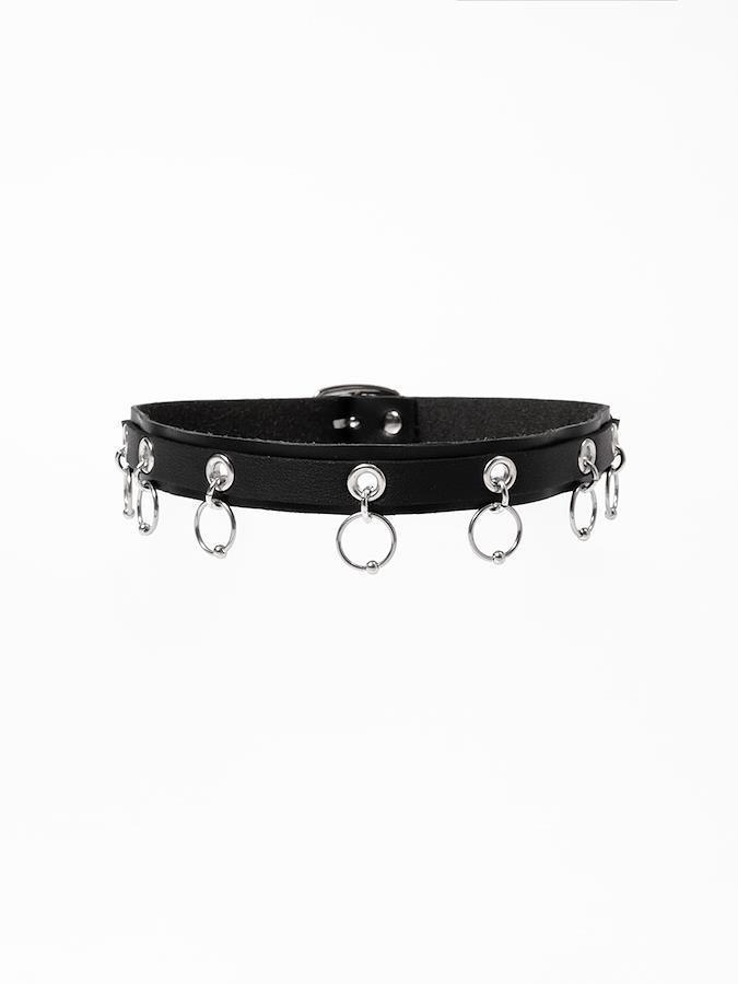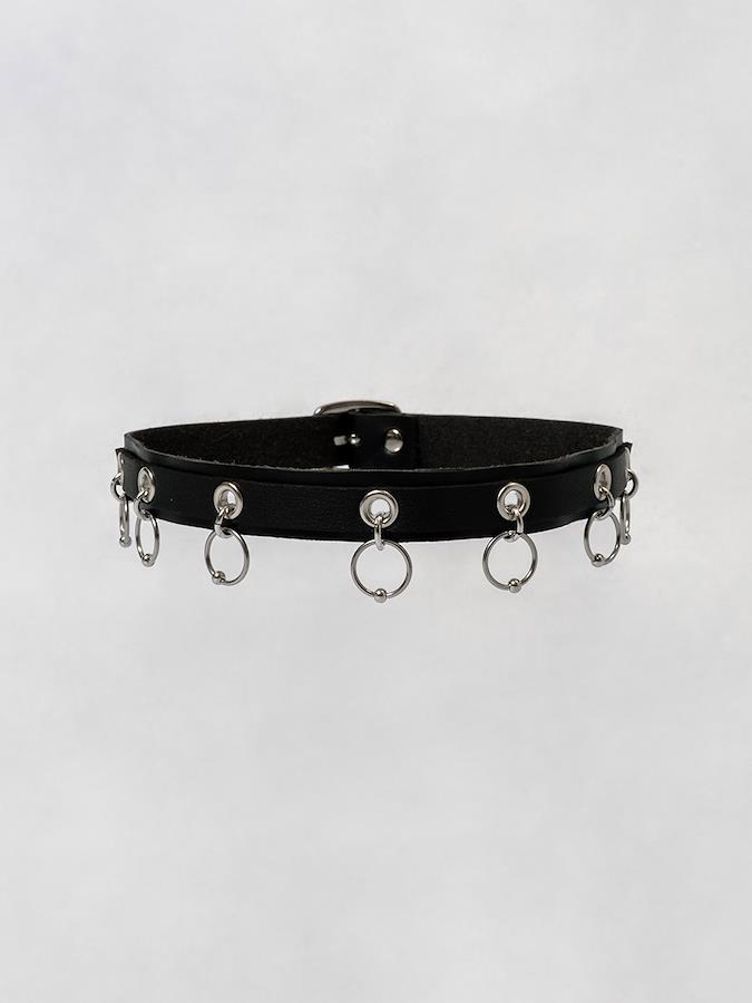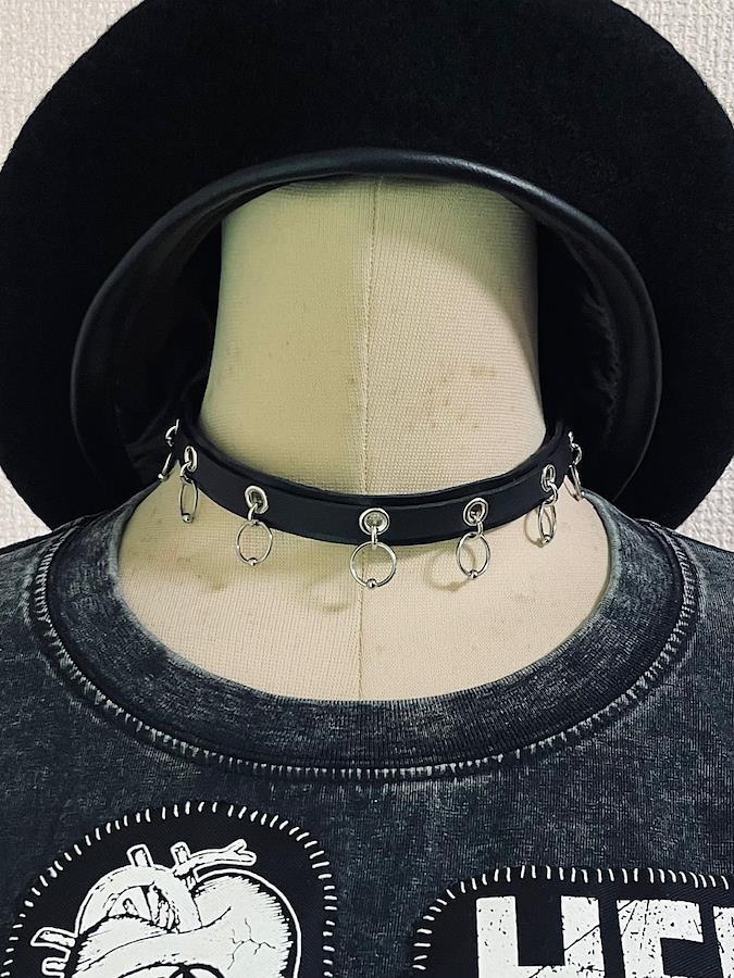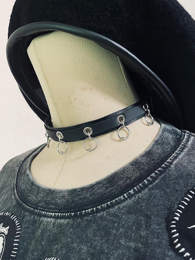 ユニセックスなデザインのリングチョーカー。細めのリングで軽いので長時間つけていても疲れにくいのもポイント♪5段階で首まわりの調節が可能です。