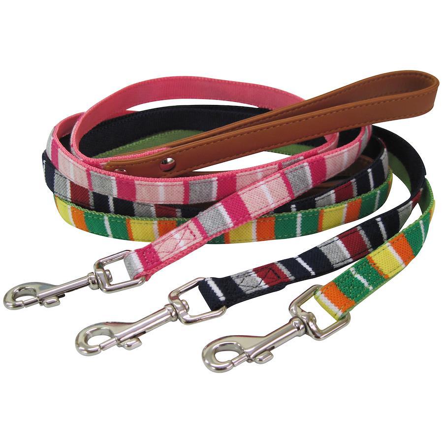 ふぞろいのボーダーがおしゃれ元気なワンちゃんにぴったりのリードですソフトな持ち手が手にやさしくなじみます