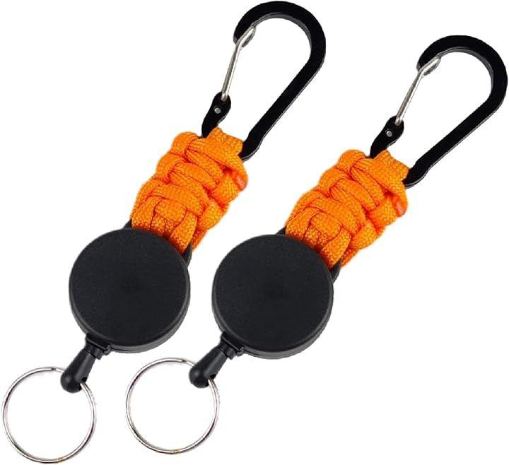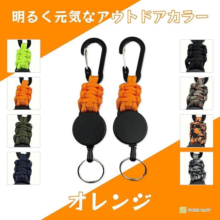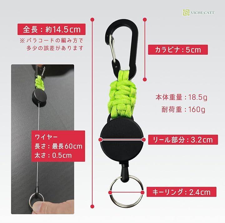 このリールキーホルダーは、伸縮性のあるワイヤーとパラコード製ストラップを組み合わせた便利アイテムです。