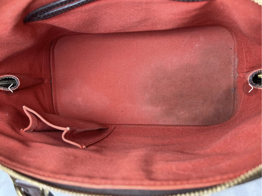 バッグ内部には使用によるシミや薄い汚れ、ペン跡などが見られます。
