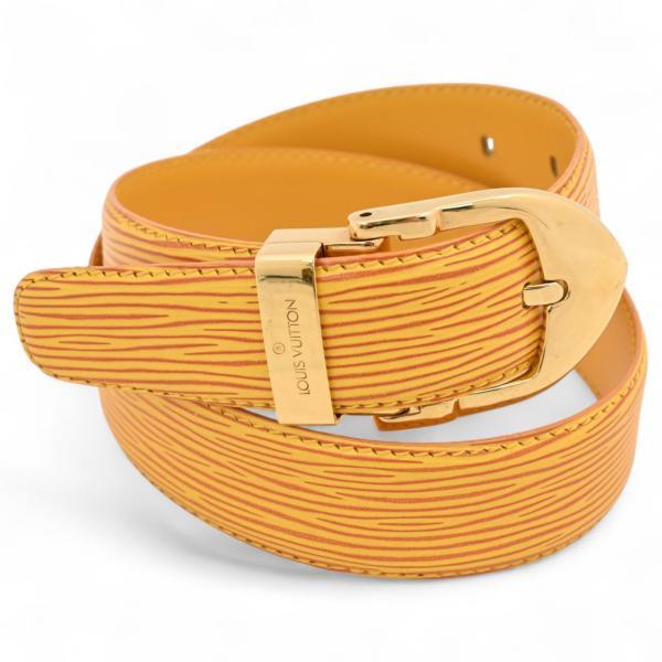 ブランド 中古 ルイヴィトン Louis Vuittonレザー ベルト タッシリイエロー×ゴールド男性 女性 メンズ レディース 男女兼用ユニセックス 革小物 ギフト プレゼント