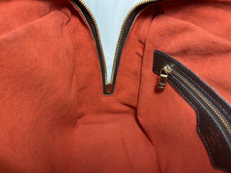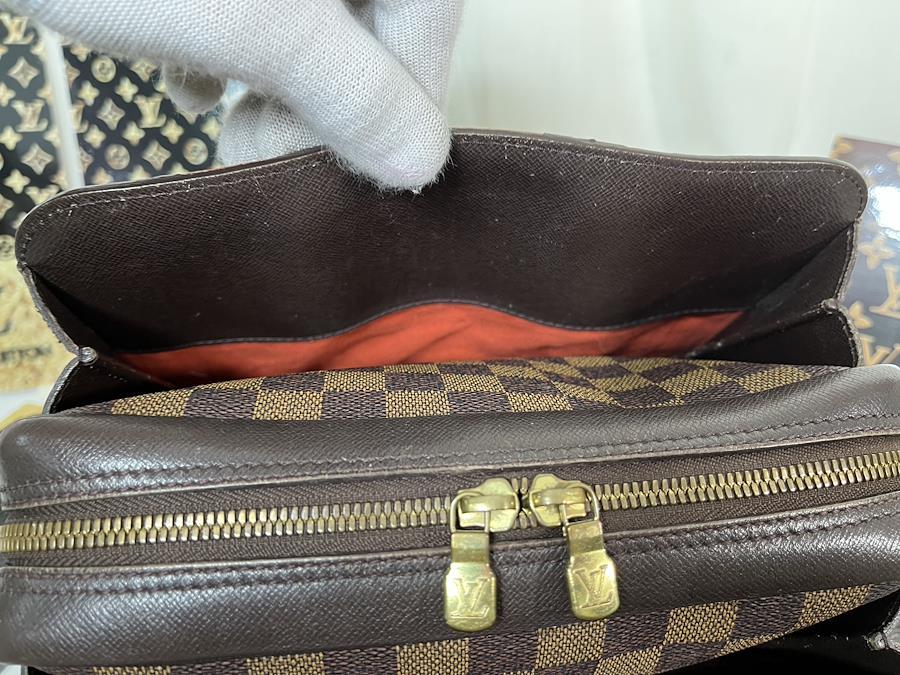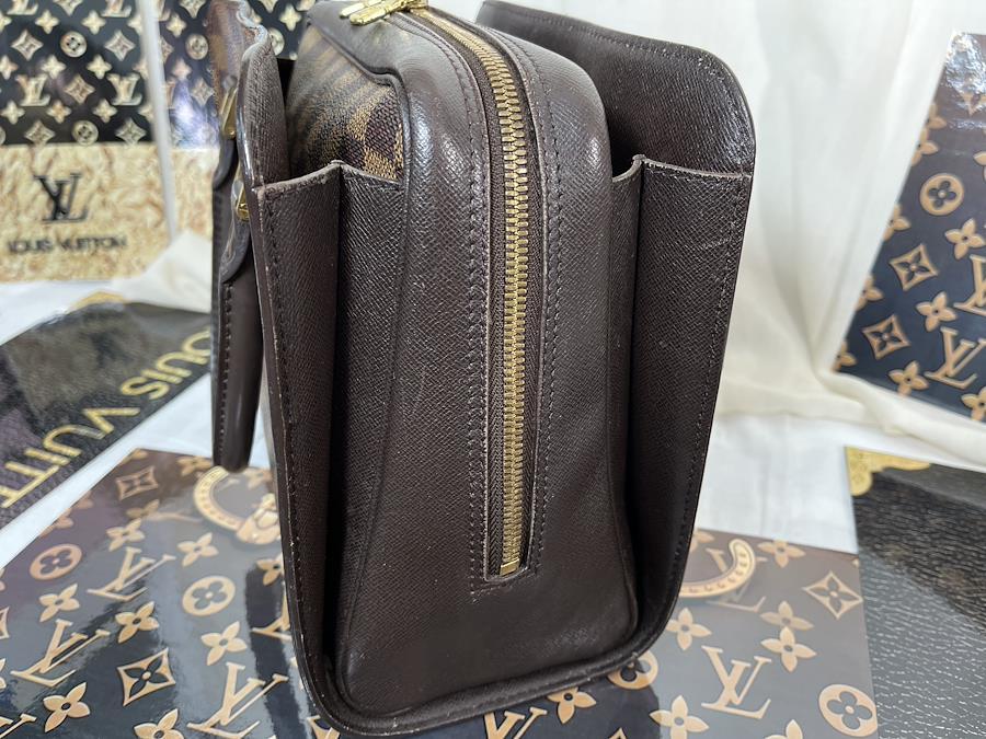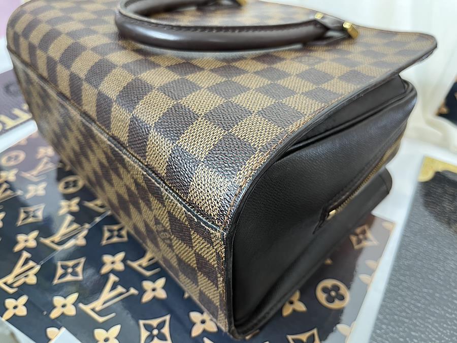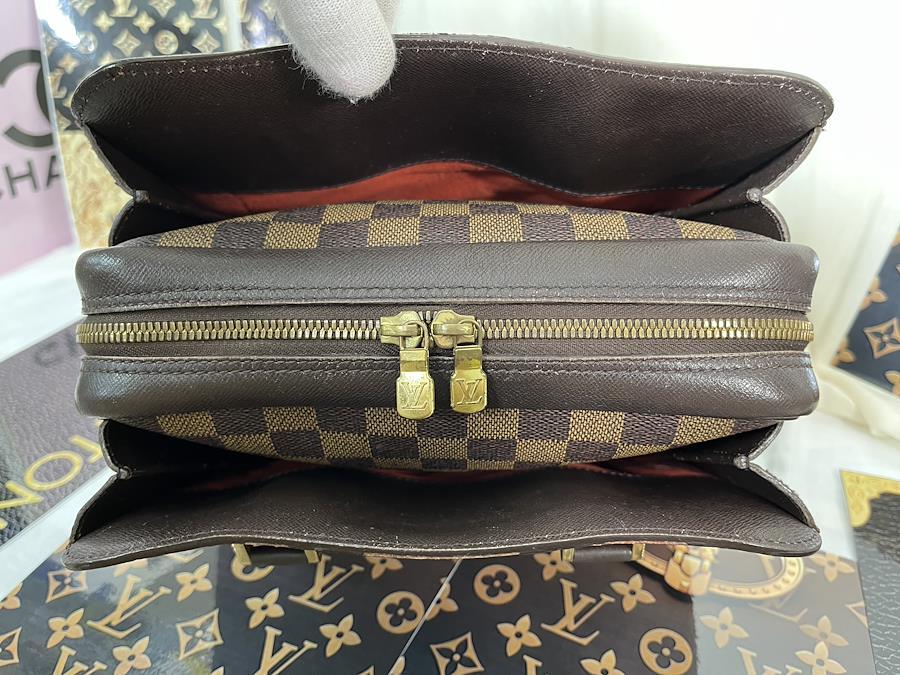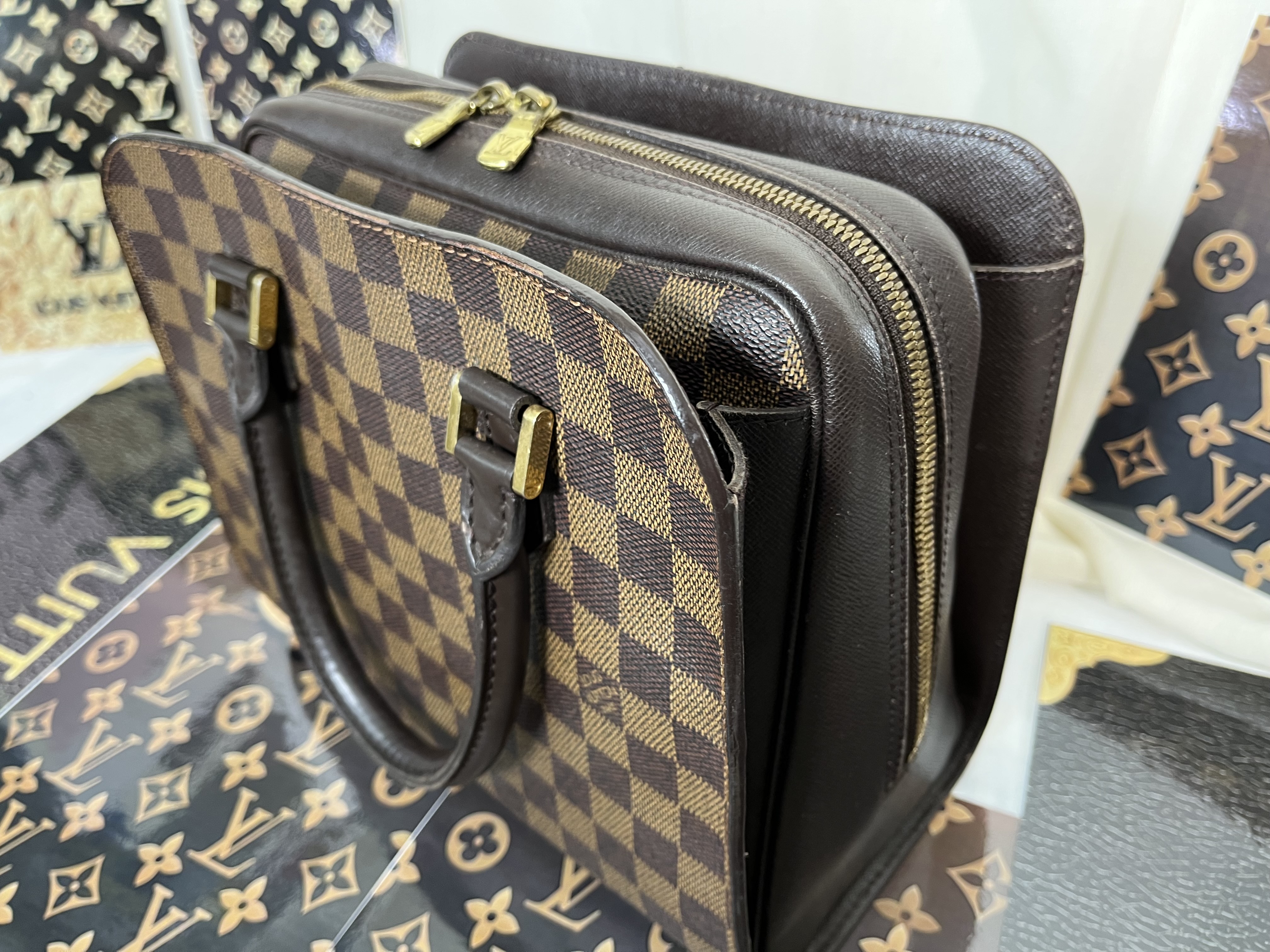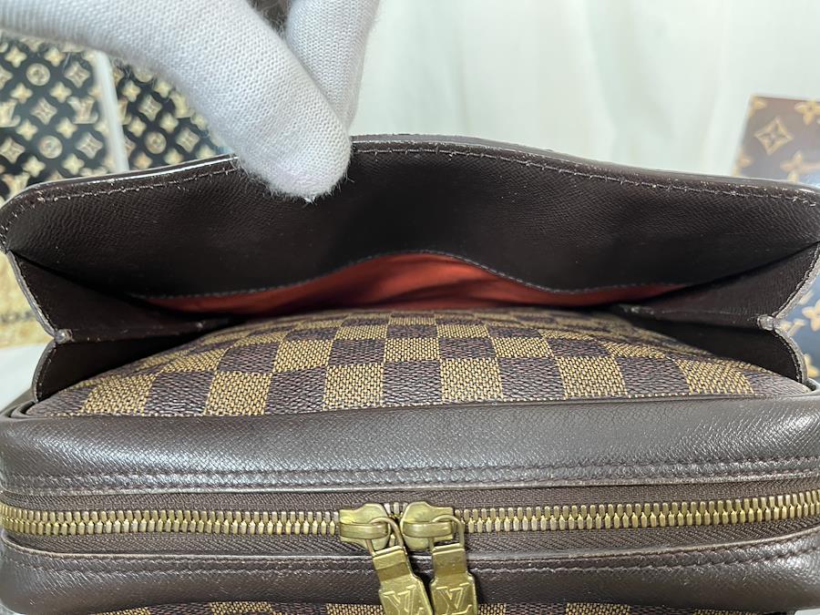 ご覧いただきありがとうございます。こちらは LOUIS VUITTON(ルイヴィトン) の定番ライン、ダミエ エベヌ「トリアナ」です。上品なブラウンの格子柄は落ち着きがあり、カジュアルからきれいめまで幅広い装いに自然に馴染みます。スクエア型の端正なフォルムは持つだけで品格が増し、ヴィトンらしい存在感を楽しめる一品。マチがしっかりあり、必要な荷物をきちんと整理しやすいのも魅力です。デイリーはもちろん、通勤やお出かけ、きちんとした場面にもおすすめです。