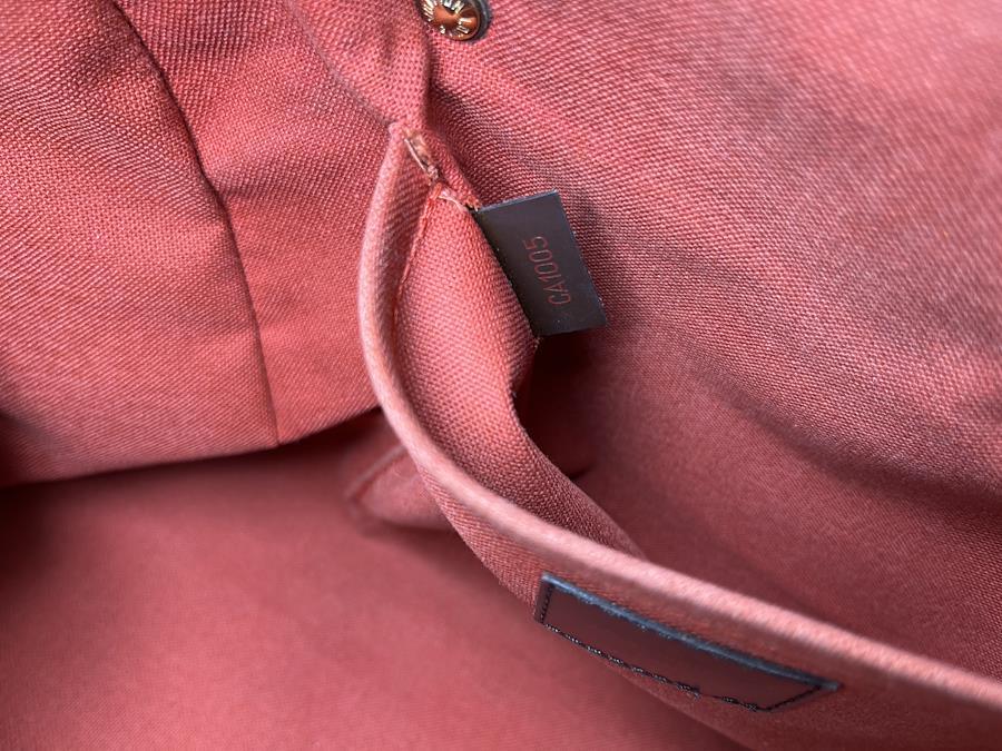 気品のあるダミエ柄とゴールド金具の組み合わせが洗練された印象を与えます。