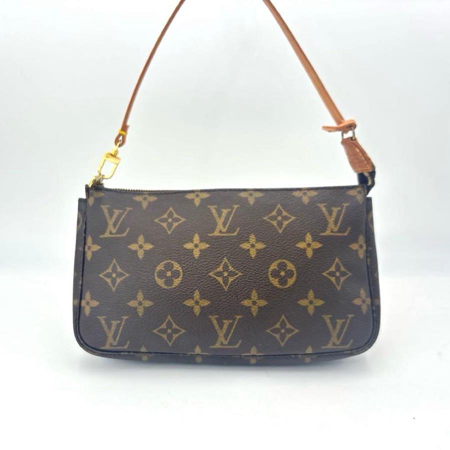 LOUIS VUITTON ルイヴィトン モノグラム ポシェット アクセソワール アクセサリーポーチ ハンドバッグ ブラウン PVC レザー レディース ユニセックス