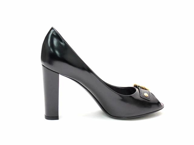 【管理番号】 007683【ブランド名】 ルイ・ヴィトン LOUIS VUITTON【アイテム】 オープントゥ パンプス M【サイズ】 38 ヒール:約9cm【色・柄】 黒【素材】 レザー【付属品】 箱/トップリフト【外観ランク】SAランク