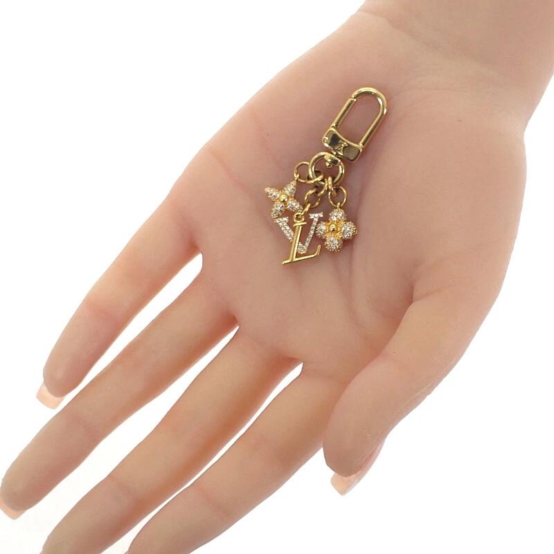 メタルにゴールドカラーを施した華やかなデザインに、透明感あふれるクリスタルをあしらい、繊細なフラワーモチーフを立体的に表現したラグジュアリーなチャームです。小ぶりながらも存在感があり、バッグやポーチ、キーリングなどさまざまなアイテムに簡単に取り付け可能。揺れるたびに光を反射し、コーディネートや小物に上品なアクセントを添えてくれます。
