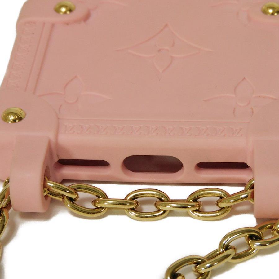 | リサイクルTPU素材にルイヴィトンのモノグラムパターンがエンボス加工された「リ・トランク iPone 14 Pro」チェーン付きスマホケースです。 |