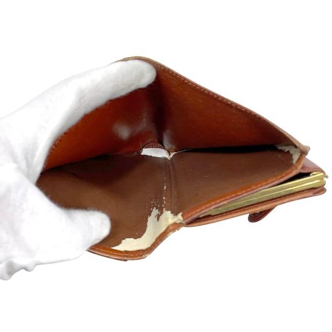 商品名:二つ折りがま口財布ポルトフォイユヴィエノワブランド名:ルイヴィトン/LOUISVUITTON商品ランク:Bランク素材:エピレザーサイズ:(約)w:13.5cm×h:9cm×d:3cm型番・品番:M63271シリアル:MI0917ライン:エピカラー:ブラウンケニアブラウン仕様:札入×1、カードポケット×4、オープンポケット×2、小銭入れ(がまぐち)×1付属品:なし詳細説明:角や縁に擦れ、金具に傷や色剥がれ、小銭入れ内に汚れ、内側表面に傷や僅かに線汚れ、札入れ内が劣化による剥がれ、カードポケットとオープンポケット内多少のベタつき感など使用感がございます。管理ナンバー:ec-24446no,7500731251108