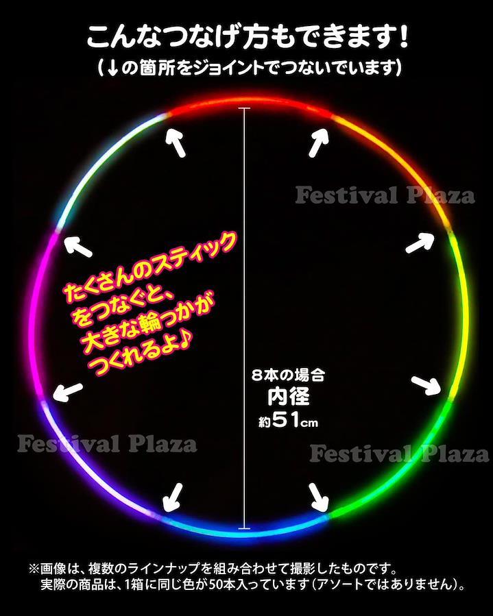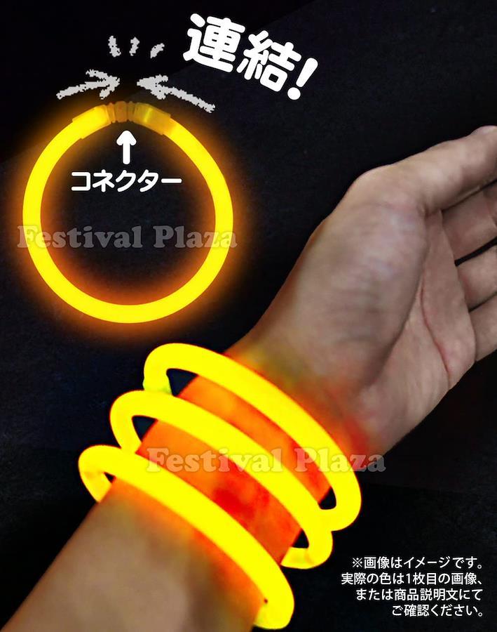 3営業日以内に発送≪新品未開封品≫お祭りやイベントで目立つ!光るブレスレットです!スティックを軽く折り曲げて振るだけで光る!両端をコネクターで連結させると輪っかになり、ブレスレットとして使えます。(コネクターが予め、スティック1本1本にくっついているので、とっても簡単に輪っかが作れます!)