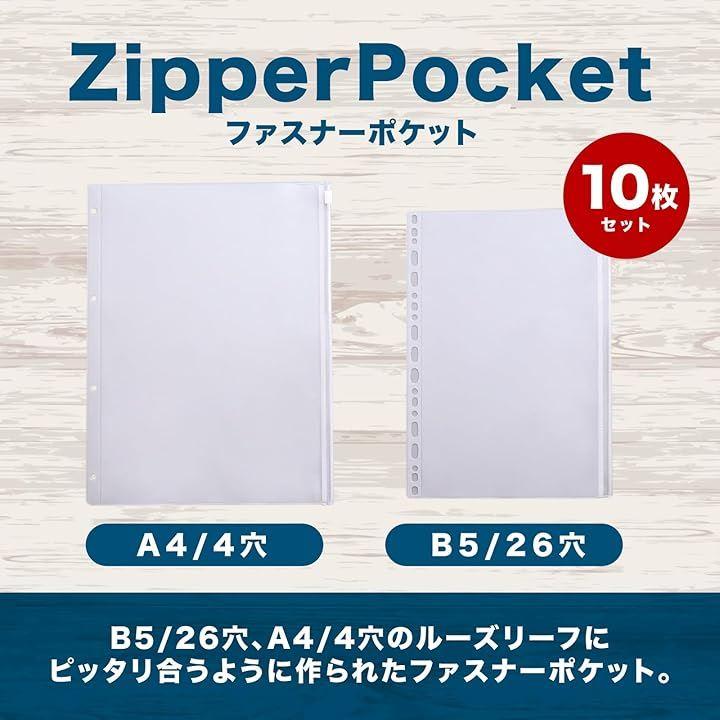 「商品内容」ルーズリーフ ファスナーポケット「セット内容」10枚「サイズ」B5:18cmx25.5cm、A4:24cmx31.5cm「素材」ビニール *モニターの環境により、色の見え方に若干差が生じる場合がございます。