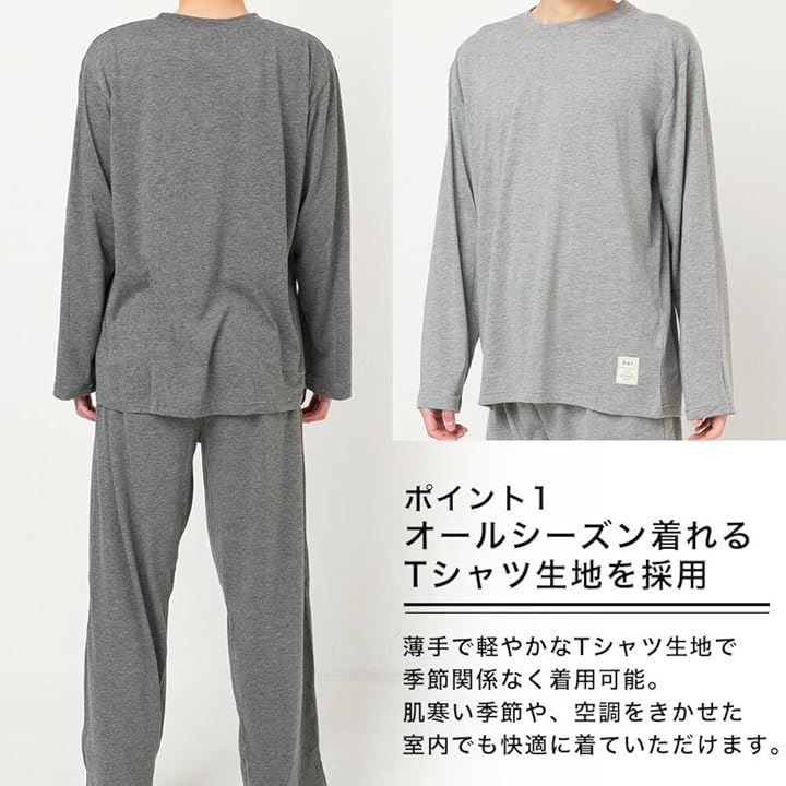 「オールシーズン着れるTシャツ生地を採用」薄手で軽やかなTシャツ生地で季節関係なく着用可能。