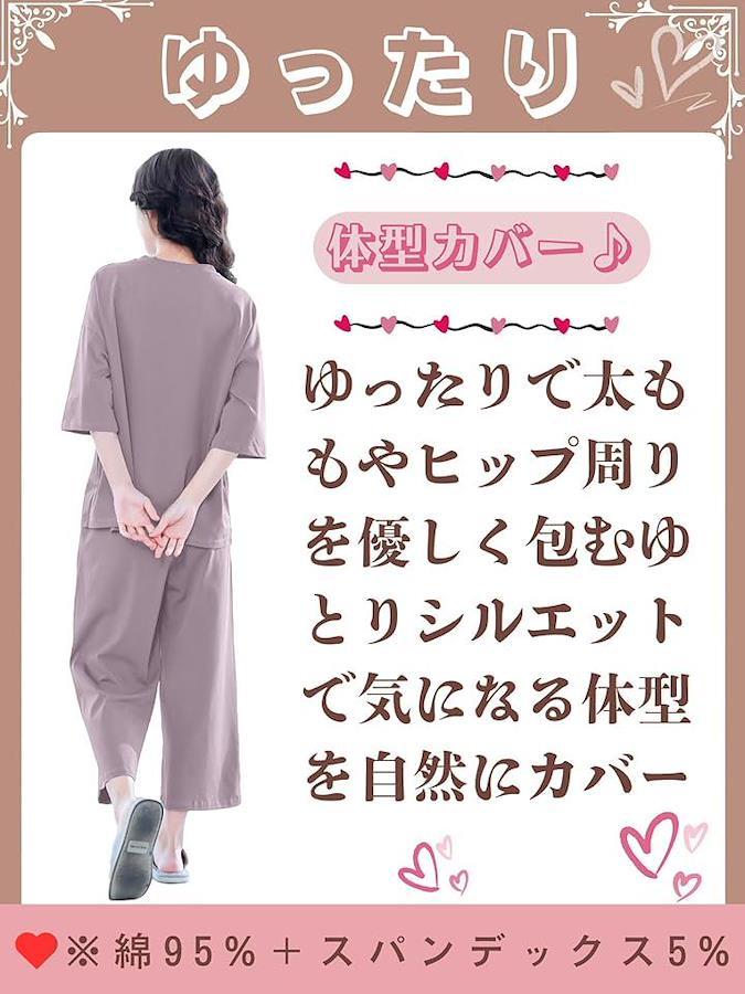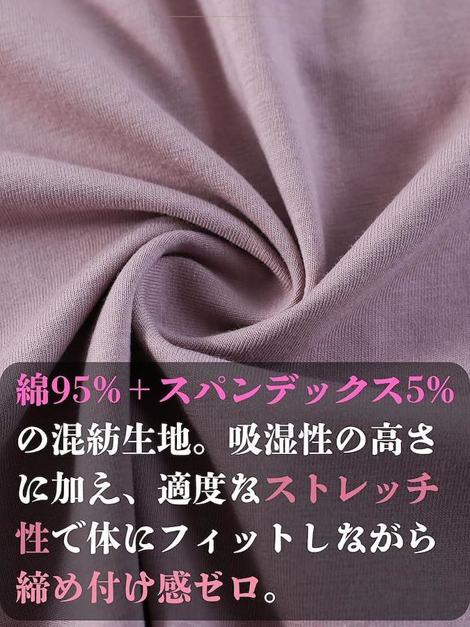 緩いウエストゴム仕様で、食事後や生理期でもお腹を圧迫せず、就寝時はもちろん、リビングでのくつろぎタイムにも最適。