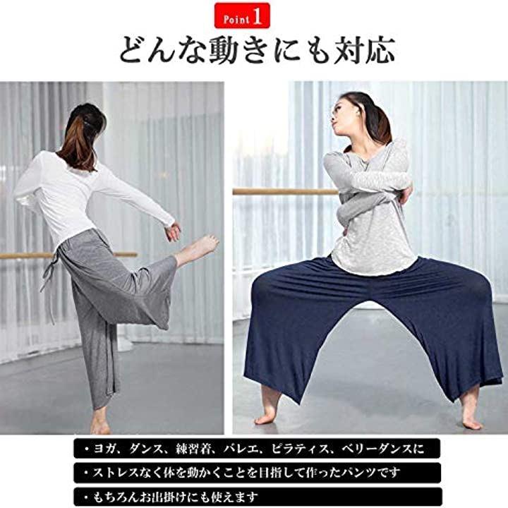 ヨガ、ダンス、練習着、バレエ、ピラティス、ベリーダンスなど、ストレスなく体を動かくことを目指して作ったパンツです。