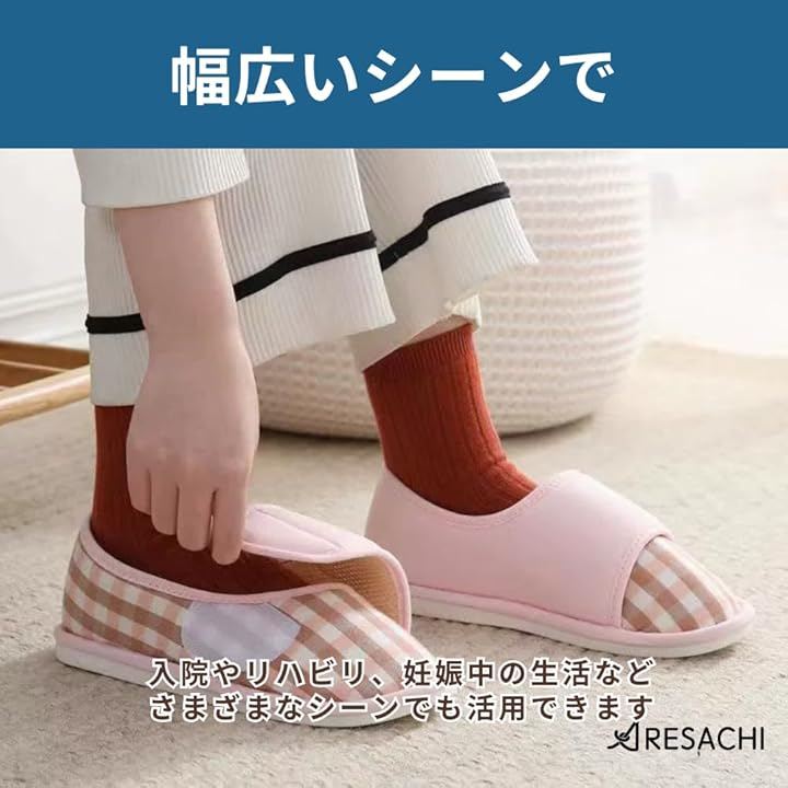 「幅広いシーンで使える」室内履きとしてはもちろん、入院やリハビリ、妊娠中の生活などさまざまなシーンでも活用できます。