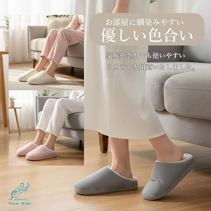 包み込むようなフォルムのルームシューズで、室内時間を快適にサポート。