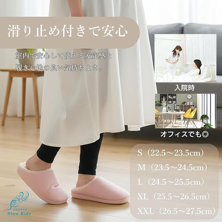 防滑ソールを採用し、フローリングでも安心して歩ける室内履き。