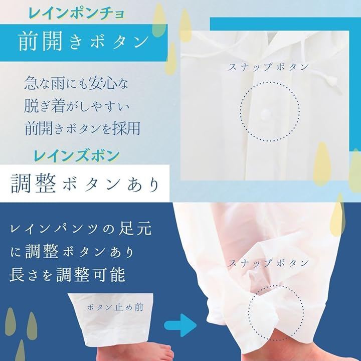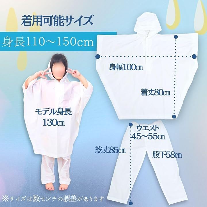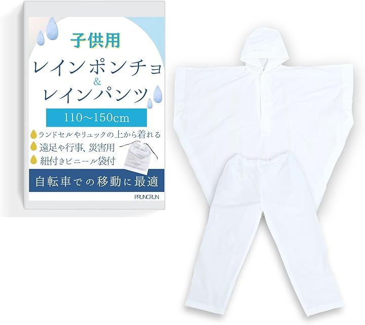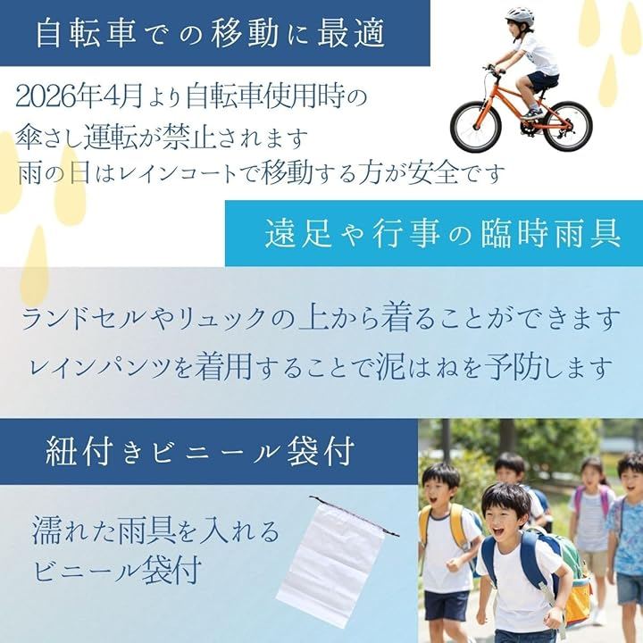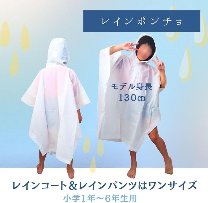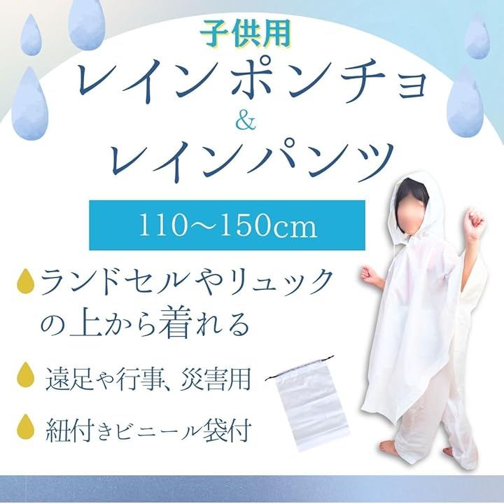 サイズ展開: 小学生用110~150cm対応で、レインポンチョはリュックやランドセルの上から使用でき、レインパンツはウエストにゴムを使用しており脱ぎ着しやすくしています。