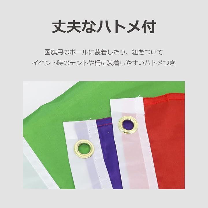 「丈夫なハトメ付」国旗用のポールに装着したり、紐をつけてイベント時のテントや柵に装着しやすいハトメつき