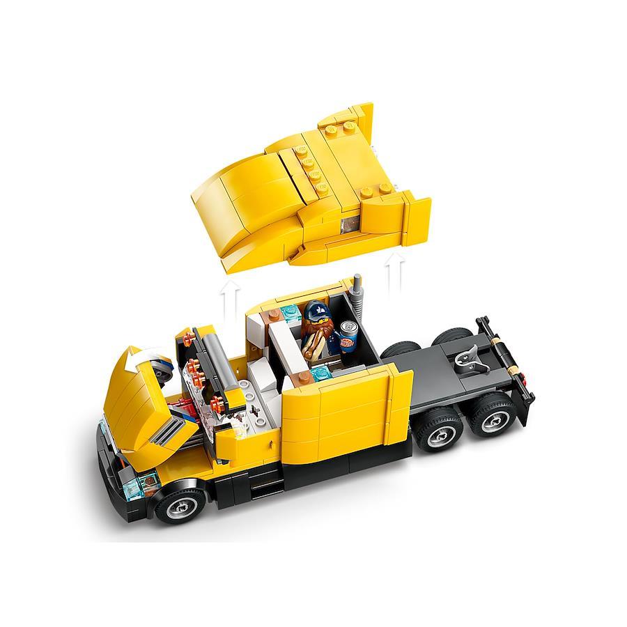 レゴ シティでは、たくさんのおもちゃの配送準備中。みんな、たくさん働いてお腹がペコペコだから、ホットドッグが飛ぶように売れてるんだね。きいろの配送トラックのサイドパネルを開いて、フォークリフトでおもちゃを荷台に積み込もう。長距離ドライブに備えて、運転手の仮眠エリアもついてるスーパートラックだ! さあ、エンジンをチェックしたら、さっそく出発進行! レゴ ファンのためのトラック組み立てセット 小さなビルダーの大きな笑顔が見られるレゴ シティシリーズのプレイセット(対象年齢:8才以上) セットの内容 きいろの配送トラック、フォークリフト、ホットドッグ屋台の組み立てに必要なパーツと、ミニフィギュア4体 レゴ 大ファンへのプレゼントに 配送トラックのトレーラーのサイドパネルを開き、フォークリフトを使って荷台に積み込むのは、なんとレゴセット! アクセサリーが充実したレゴ シティ セット レゴセットの箱・ホットドッグ2つ・ケチャップ・マスタード・工具など、ミニフィギュアを使ったごっこ遊びを楽しくしてくれるアクセサリー付き 楽しさいっぱいのお子さまへのギフト お誕生日やクリスマスのプレゼントはもちろん、ちょっとしたごほうびにもぴったり(対象年齢:8才以上) デジタル世代の新しい組み立て遊び 手順がひと目でわかるLEGO Builderアプリは、3D表示されたモデルをズームや回転させながら組み立て、作業途中の状態で保存していつでも再開できるからとっても便利 限界突破だ!レゴ シティ! レゴ シティシリーズは、リアルなデザインの建物や乗りものとキャラクターたちが、お子さまの尽きない想像力を引き出し、組み立て遊びを通じて創造と探究の楽しさを伝えます サイズ トレーラー付きトラック(約)高さ10cm × 長さ47cm × 幅7cm/ピース数:1,061