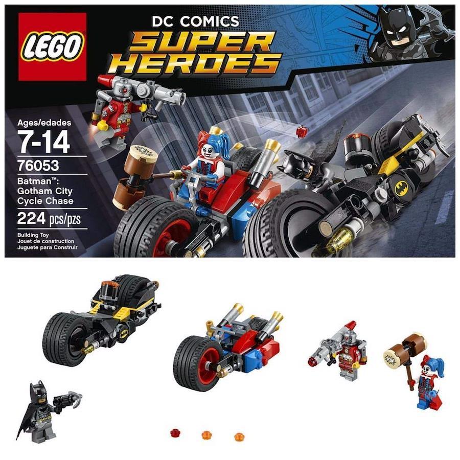 ジェットパックをつけたデッドショットがバズーカ砲を撃っているぞ。バットサイクルのスタッドシューターで反撃だ! ハーレーを追いかけて、バットラングとフックガンを使って戦いを地上に移せ。だが気をつけろーハーレーが大きなハンマーをバイクにつけたらバットマンが空に放り出されるぞ!