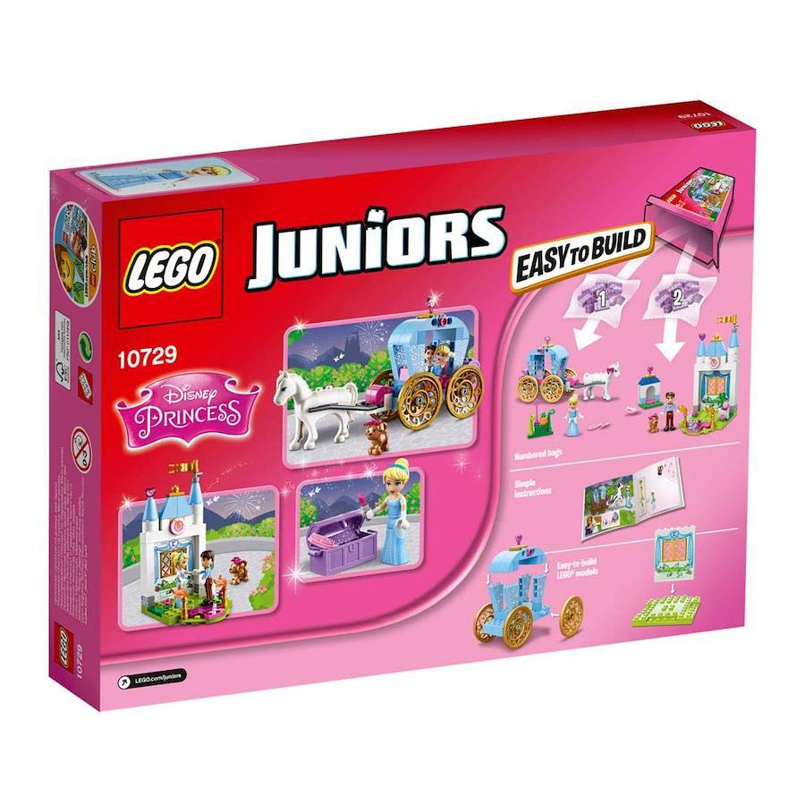 シンデレラと一緒に魔法の馬車でワクワクお出かけ! 王子様に会いに行ったり、かわいい子犬と遊んだり、ダンスパーティに行きましょう! したくを手伝ってあげてね! 魔法がとける前に、急いでおうちに帰らないと! レゴ? ジュニアでディズニープリンセスのおとぎ話を楽しもう!