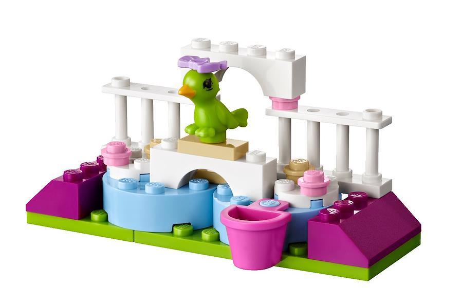 オウムのとまり木「パーチ」をつくってあげましょう! パーチにのせたり、かわいいちょうネクタイをつけてあげたり、大好きなたねをあげたり、たくさんお世話してあげてね! LEGO.com/friendsにアクセスしてオンラインでオウムの世話をしてね! 作り方のヒントもダウンロードできるよ!