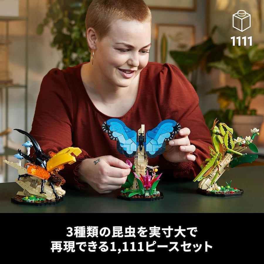 レゴアイデア 昆虫コレクション(21342) - 今にも動きだしそうな3種類の昆虫を組み立てて生命の神秘を実感しましょうモルフォチョウ(Morpho peleides) - 青のグラデーションに白い斑点が映える羽を調節し、ミツバチといっしょに花の周りに飾ってお楽しみださいヘラクレスオオカブト(Dynastes hercules) - 立派な角を持つヘラクレスオオカブトは羽を取り外せますオオカマキリ(Tenodera sinensis) - 獲物を狙うメスのオオカマキリのポーズを変えて、ナナホシテントウムシといっしょに飾れます昆虫好きへの贈りもの - 自然と昆虫を愛する方へのプレゼントにぴったりな1,111ピースセットディスプレイモデル - サイズ:(約)高さ18cm x 長さ17cm x 幅16cmひとりでみんなと - モデル別の組み立て説明書を見ながら、ご家族やお友だちといっしょに楽しめます。さらに、昆虫のことを紹介した冊子が付属し、LEGO Builderアプリにも対応していますレゴファンの推し - レゴファンのデザイン案をファン投票で選び、レゴグループが商品化した「レゴファンによるレゴファンのため」のレゴ アイデアシリーズインテリア, 模型 が好きな 男の子 女の子 向けのおもちゃ【免責事項】メーカーによる商品リニューアルに伴いパッケージ(内容量も含む)変更が行われた場合、新パッケージでお届け致します事ご了承願います。