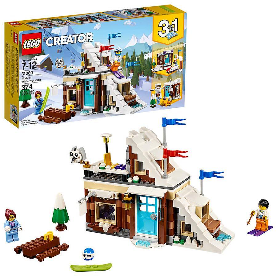 ウィンターバケーション (モジュール式) セットでアクティブな休暇をすごそう。小さなスキーショップでスキーセットや熱いココアを買ったら、外にあるピクニックベンチか屋上のバルコニーに出よう。焚火でよくあたたまったら、スキーをつけて出発! 丘を下って大きくジャンプしたら完璧な着地を決めよう。自分で組み立てるスキーショップはモジュール式になっていて、自由にカスタマイズできるよ。窓やドアを入れ替えたり、ダブルスロープを作ったり-すべては君次第だ! セットを組み立て直せば、ボブスレーとテレビカメラもついたボブスレートラックにしたり、公衆トイレの近くにおかしな動物を出没させてみんなを驚かせることができるよ!