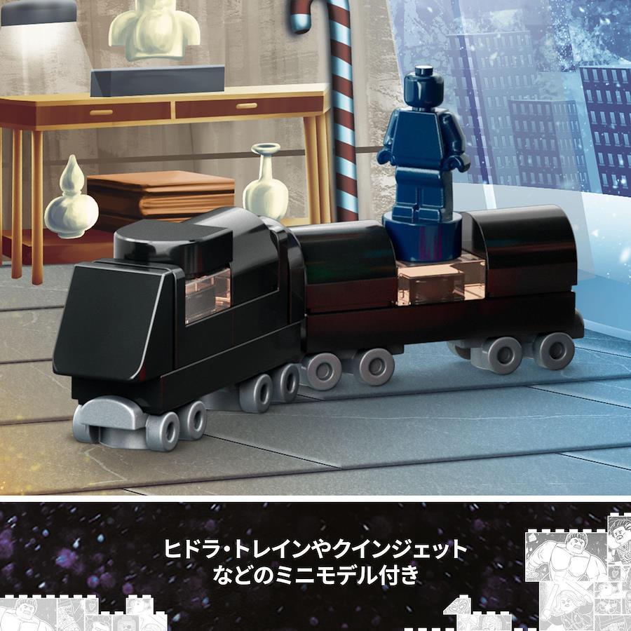 マーベル・ユニバースからの贈りもの - ミニフィギュア7体(「オコエ」「ドクター・ストレンジ」「キャプテン・アメリカ」「スパイダーマン」「ウォン」「アイアンマン」「ブラック・ウィドウ」)のほか、ミニモデルや各種アクセサリーが盛りだくさん。