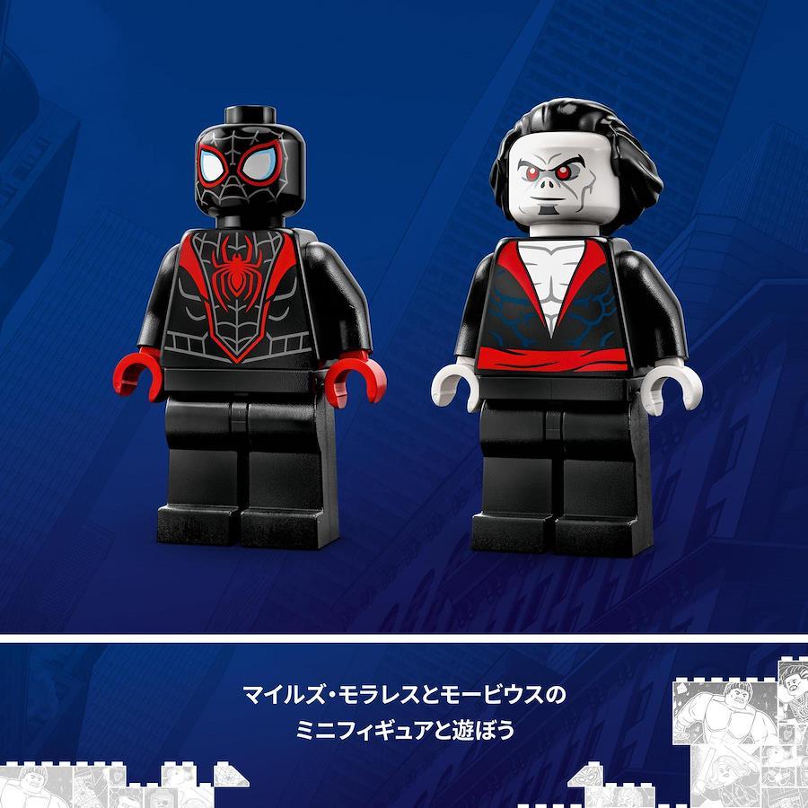 モービウスを追ってカッコいいレースカーで街中を駆け抜けよう。ブースターエンジンで加速しながら、2台のスタッドシューターを連射しよう。モービウスも手下のコウモリも強力なクモの糸で一網打尽にするぞ!