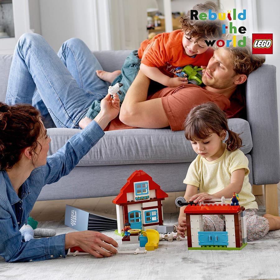 レゴ? デュプロ? のまちは、デュプロのお人形といっしょに、ごっこ遊びを楽しむのにぴったり。お子さなと一緒にたのしいのうじょうへ出かけて、かわいい動物たちにエサをあげましょう。ひもを引くと上下に動くベルやすべり台など、遊べる仕掛けにきっと夢中になれるはず。動物たちが小屋で眠りについたら、みんなで家にもどっておいしいワッフルを作りましょう!デュプロのお人形3体と動物のお人形5体つき。
