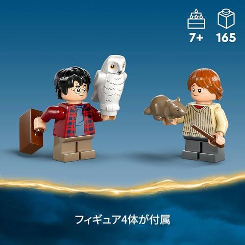 レゴハリー・ポッターのキャラクター4体 - ハリー・ポッターとロン・ウィーズリーのミニフィギュア、ヘドウィグとスキャバーズのどうぶつフィギュア、スーツケース、杖2本が付属しています