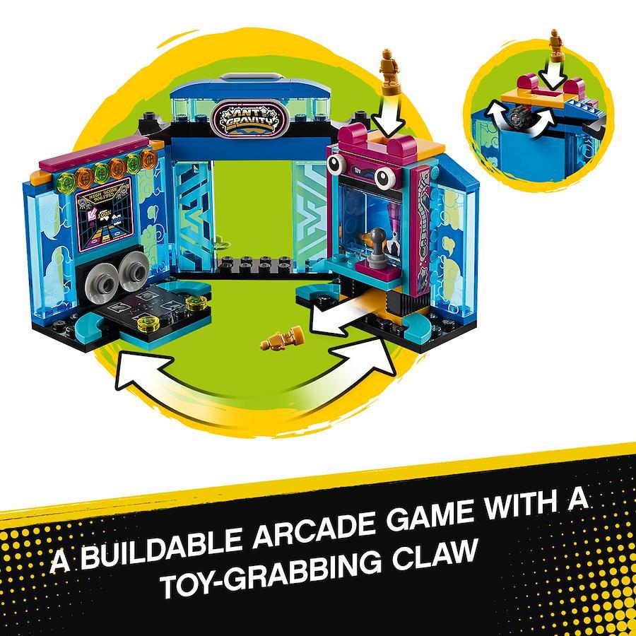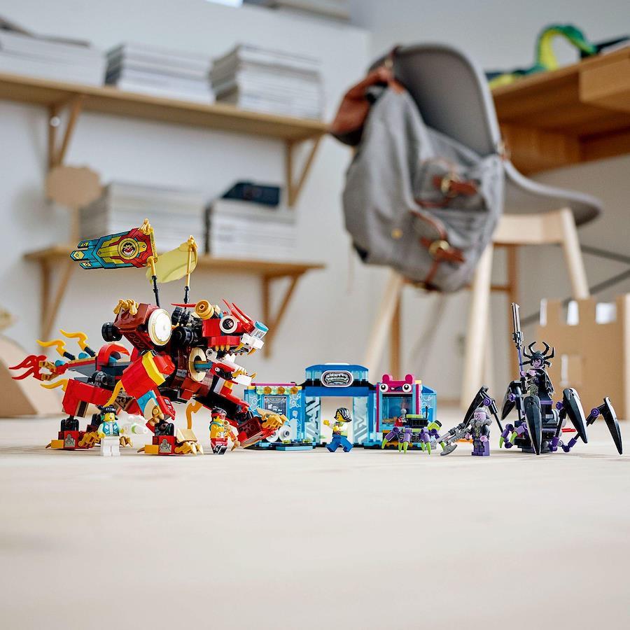 ゲームセンターでクレーンゲームを楽しんでいたら、スパイダークイーンと手下がスパイダーロボで攻撃してきた! ライオン・ガーディアンに乗ったモンキーキッドやメイと一緒に町の人たちを守ろう。スパイダークイーンの攻撃をかわしながら、スプリングシューターをお見舞いしよう。町を救えるのはキミたちだけだ!