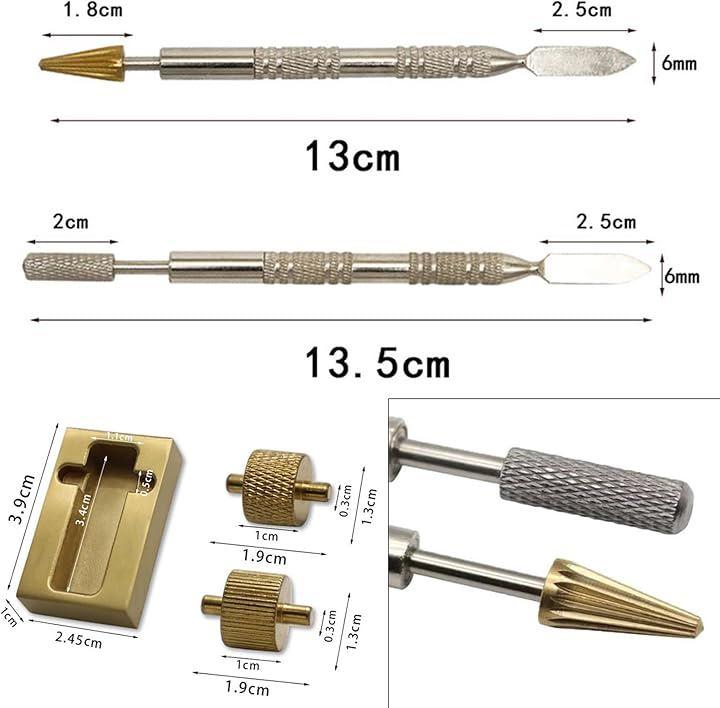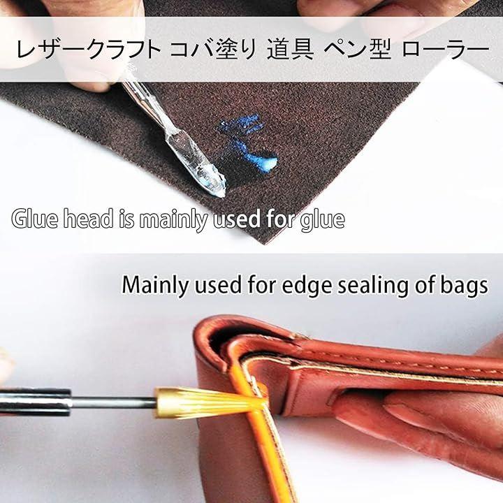 ペン型ツールは、円柱型と円錐型の異なる先端を持ち、革のコバの幅に合わせて使い分けが可能です。