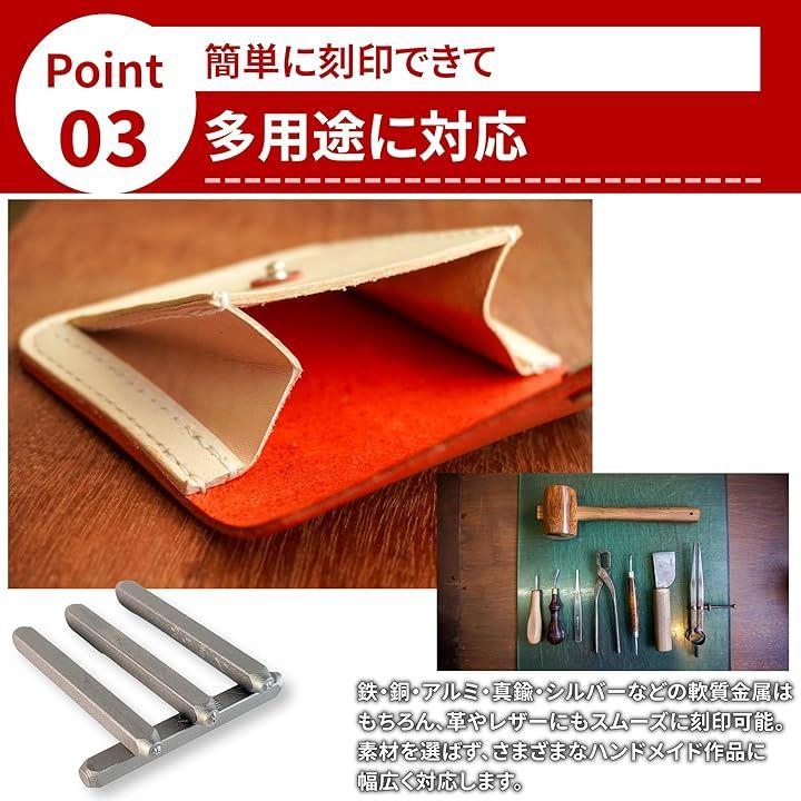 レザー・軽金属対応 : レザーはもちろん、シルバーやアルミなどの軽金属にも刻印可能。