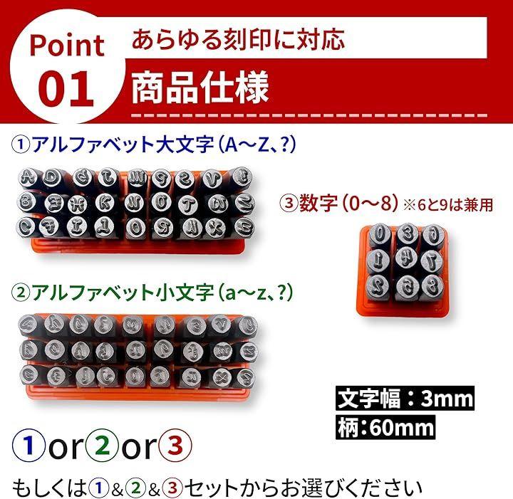 商品仕様 : 用途に応じて「数字(0~8、6と9兼用)」/「大文字(A~Z)」/「小文字(a~z)」/「大文字+小文字+数字セット(合計63本)」の4種類から選べます。