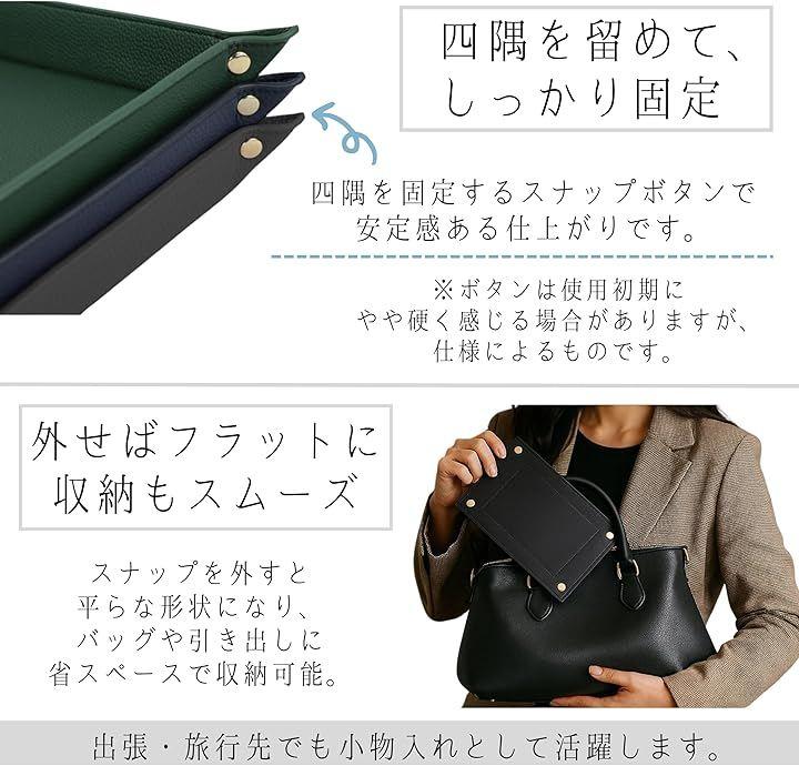 「しっかりとした構造とボタン設計」厚みのあるPUレザーと、四隅を固定するスナップボタンで安定感ある仕上がり。